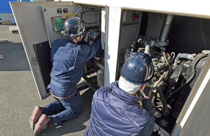 非常用発電機・蓄電池設備・非常用動力設備などの電気設備のメンテナンスや工事から設備部品販売まで、自社一貫体制でサポートしています。